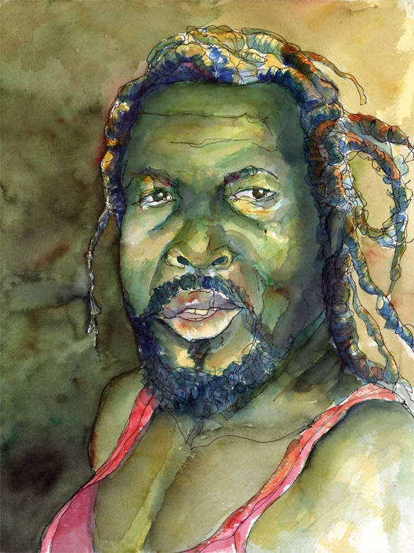 I've drawn dozens of pen-and-ink line portraits this year and have slowly begun to push them further along with watercolor. I've shared just a couple here already (Shara, Tasha, Jube) and have some more today.